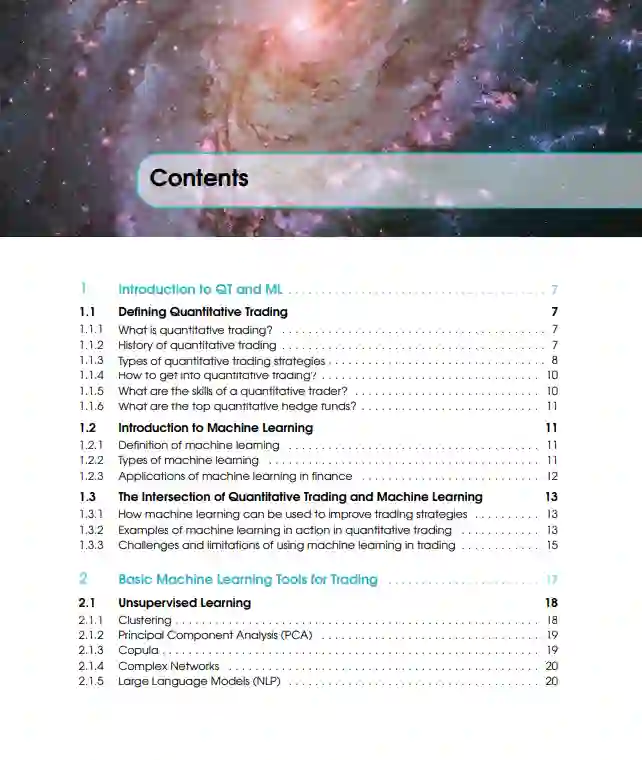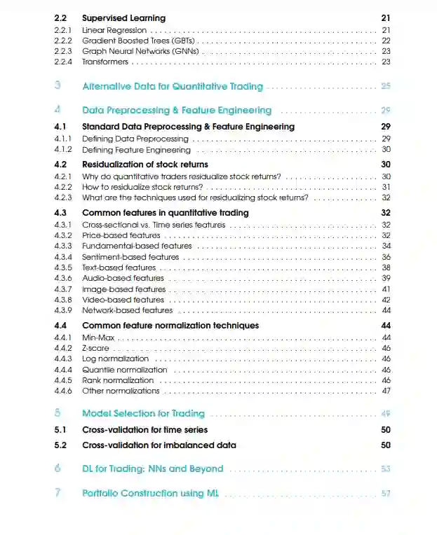 我们首先介绍了量化交易的机器学习的关键概念和挑战,包括特征工程、模型选择和回溯测试。然后,我们深入研究了定量交易中常用的各种机器学习方法,包括监督学习、无监督学习和强化学习。我们还讨论了在实时市场中实现机器学习模型的挑战和最佳实践,包括数据质量的作用,风险管理的重要性,以及对持续模型监控和验证的需求。
