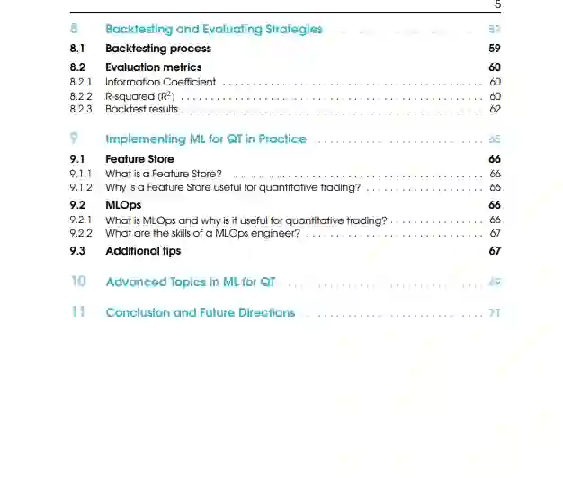 在整本书中,我们提供了大量的例子和案例研究来说明所讨论的概念和技术,我们还包括实用的技巧和资源,以帮助交易员和从业者开始使用机器学习进行量化交易。对于那些希望更深入地了解机器学习如何改变金融世界的人来说,这本书是一本必不可少的资源。”