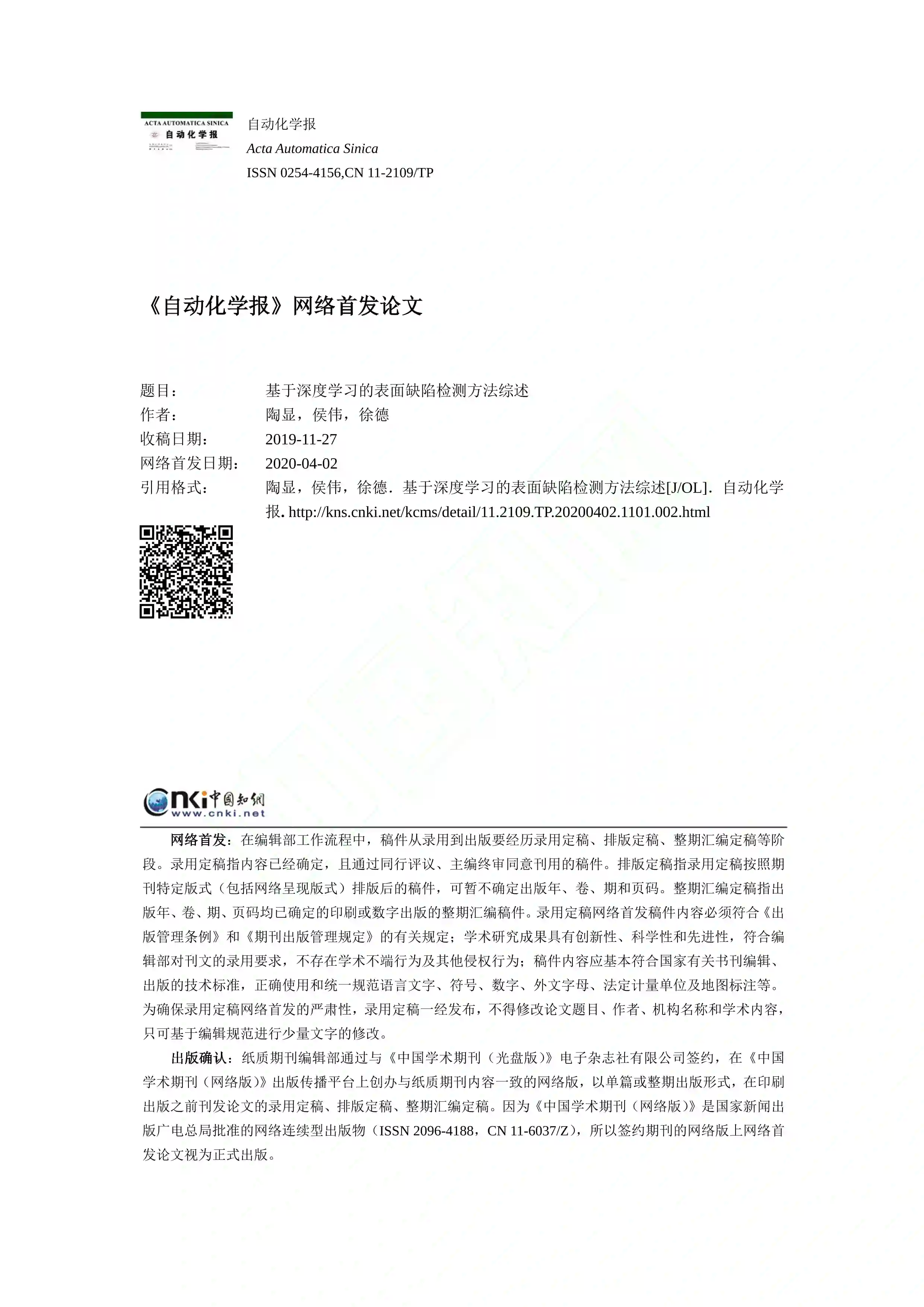 摘要:近年来,基于深度学习的表面缺陷检测技术广泛应用在各种工业场景中.本文对近年来基于深度学习的表面缺陷检测方法进行了梳理,根据数据标签的不同将其分为全监督学习模型方法、无监督学习模型方法和其他方法三大类,并对各种典型方法进一步细分归类和对比分析,总结了每种方法的优缺点和应用场景.本文探讨了表面缺陷检测中三个关键问题,介绍了工业表面缺陷常用数据集.最后,对表面缺陷检测的未来发展趋势进行了展望.