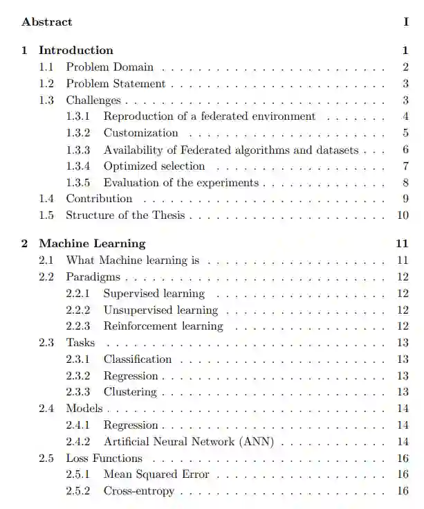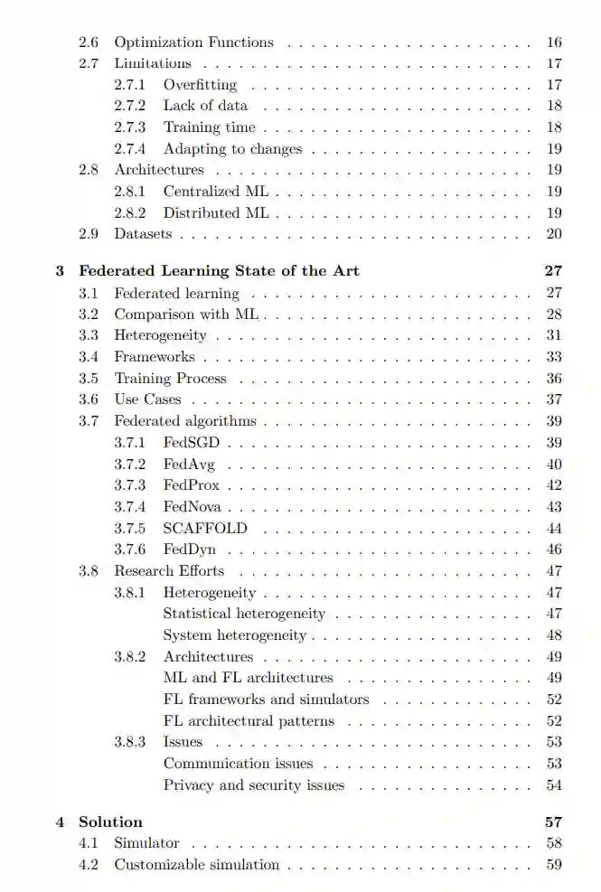 计算处理能力的提高和数据存储的可负担性正在为机器学习开辟可能的应用范围。机器学习(ML)是一个研究类别,它侧重于从通常从外部设备收集的数据中学习,以建立一个模型,能够预测给定特定输入的正确输出。然而,尽管计算能力和存储能力不断提高,现代技术仍然难以跟上收集的数据量步伐,当这些信息必须传输到中央服务器进行处理时,会导致网络速度减慢。此外,收集的数据可能包含敏感信息,在进行这种传输时,用户的隐私面临风险。为了解决这些问题,联邦学习(Federated ML)正在广泛地获得势头。联邦学习(FL)是一种ML技术,其目的是在持有本地数据样本的多个分散的设备上训练算法,而不进行交换。在联邦学习中,参与训练的设备从服务器上检索模型,用本地数据在本地训练模型,然后将训练好的模型参数传回给服务器。然后,这些本地模型的更新被聚集起来。这个过程要重复多次,直到达到令人满意的精确度。然而,FL也带来了一些缺点。例如,数以百万计的模型参数的通信引入了通信开销。与经典ML相比,另一个区别是数据的异质性和设备能力及网络条件的异质性。目前的技术水平显示了大量试图解决上述问题的算法。不幸的是,流行的FL框架和仿真器使得尝试新算法和在具有典型联邦特征的环境中进行实验变得困难。