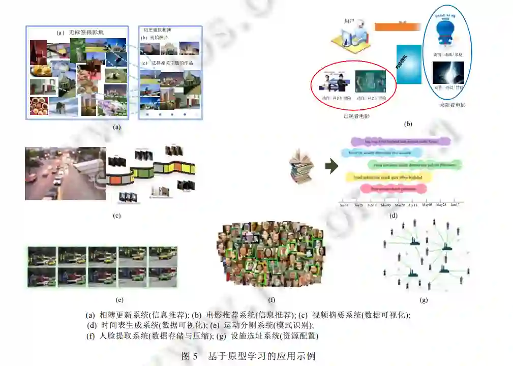 鉴于原型学习问题在机器学习中的重要性, 国内一些研究机构近些年也对此开展了相关研究, 诸如南京 理工大学的杨静宇教授课题组[10]、西安电子科技大学的焦李成教授课题组[11]、清华大学的张长水教授课题 组[12]、南京大学的周志华教授课题组[13]、北京大学的张志华教授课题组[14]、中国科学院自动化研究所的刘成 林研究员课题组[15]等. 这些课题组的工作主要围绕监督条件下的核学习、主动学习以及示例学习中的原型选 择、矩阵列选择问题、图像分类中的原型学习等进行研究. 此外, 国内的一些研究学者还基于粗糙集理论从 数据的不确定性角度开展数据约简研究[16], 这类方法虽然能够有效去除数据冗余进而发现数据结构, 但是对 获得的原型的代表性缺乏直观物理解释, 并且原型的质量还不足以满足众多应用的需求. 更为重要的是: 尽 管目前国内外学者已经发表了大量关于原型学习的研究成果, 但是关于原型学习的综述性文献却很稀少, 对 于原型的定义与解释也不够清晰. 因此, 本文梳理了原型学习领域的相关文献, 对不同文献所采用的方案、面 向的应用以及存在的问题进行了归纳总结. 通过对前人工作的学习与理解, 我们能够发现原型学习领域研究 近几十年来的理论与应用发展脉络. 同时, 通过分析近几年原型学习领域的最新研究成果, 我们可以把握当 前主流的研究兴趣与方向, 探究诸多应用背景对原型学习的具体需求, 从而对未来原型学习研究的理论与应用发展方向进行一定的预测, 进而更高效地地服务实际应用.