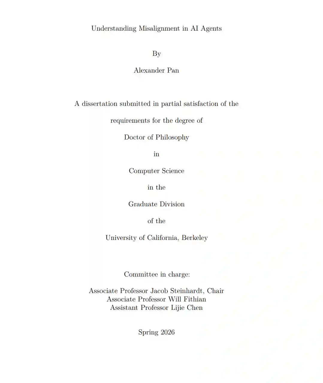现代人工智能(AI)系统正日益广泛地部署于真实世界环境中。大语言模型(LLMs)的飞速发展推动了 AI 智能体(AI Agents)的普及——在这些系统中,LLM 被赋予了观察环境并与之交互的动作空间(Affordances),并被明确指令在环境中追求特定目标。遗憾的是,智能体所追求的目标往往与操作者的预期目标存在偏差,这一现象被称为失配(Misalignment)。失配会导致严重的、非预期的现实后果,且随着智能体自主权的提升,这一问题愈发严峻。理解失配已成为开发安全 AI 智能体的关键瓶颈。 在本论文中,我们将从三个部分对 AI 智能体的失配问题进行研究: 1. 建模(Modeling):通过模拟典型智能体部署中存在的反馈回路,探究失配的产生机制。 1. 测量(Measuring):通过在类人环境中对智能体的轨迹进行行为分析,评估其普遍性。 1. 表征(Characterizing):通过将智能体的内部表示解码为自然语言,揭示其内在状态。