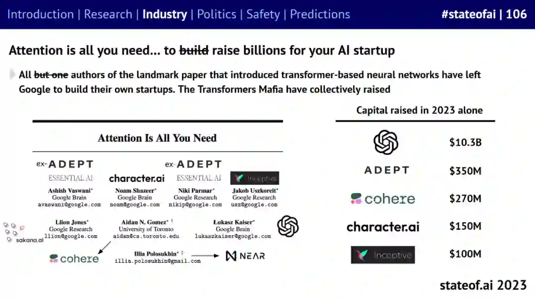此外,谷歌和 DeepMind 合并为谷歌 DeepMind,谷歌《Attention is all you need》论文作者全部离职创业。