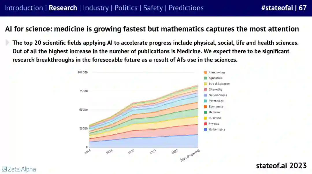 AI for Science 逐渐兴起,其中,医药发展最快,但数学关注度最高。