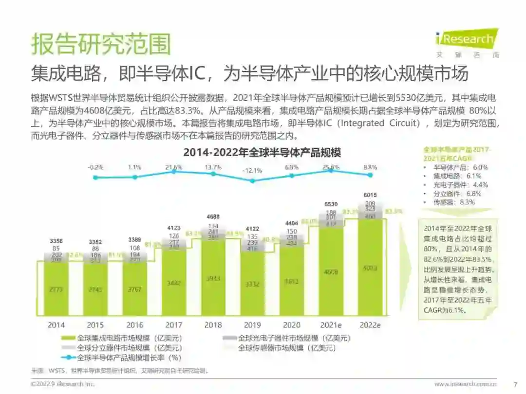 自2019年6月科创板开板以来,半导体IC二级市场企业数量增势显著,尤其在IC设计环节企业增势明显。一级资本市场经历热情高涨期,2021年迎来新一轮投融资高潮,资本偏爱“短回报周期”环节,IC设计与设备企业进入投资者视野。在中国芯片对外依存度高、芯片自给率仍亟待提升的产业背景下,国家支持力度不断加大,半导体IC产业基础性、先导性、战略性持续凸显。2021年中国集成电路产业规模达到10458亿元,其中,IC设计为4519亿元、IC制造为3176亿元、IC封测为2763亿元。