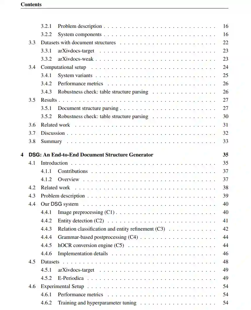 文档结构生成器(DSG):一个全新的文档解析系统,可以完全从端到端训练。之前的文档结构解析系统受到启发式方法的限制,不能从端到端训练。DSG的端到端训练使其对实际应用非常有效和灵活。此外,我们的DSG使用hOCR标记语言生成结构化的文档输出文件,允许无缝集成到现有的文档存储和处理工作流程中。我们还贡献了一个新的、大规模的、公开可用的数据集,名为E-Periodica,其中包含具有复杂文档结构的实际杂志,用于评估。我们的结果表明,我们的DSG在层次文档解析任务上达到了最先进的性能。据我们所知,我们的DSG系统是第一个用于层次文档解析的端到端可训练系统。