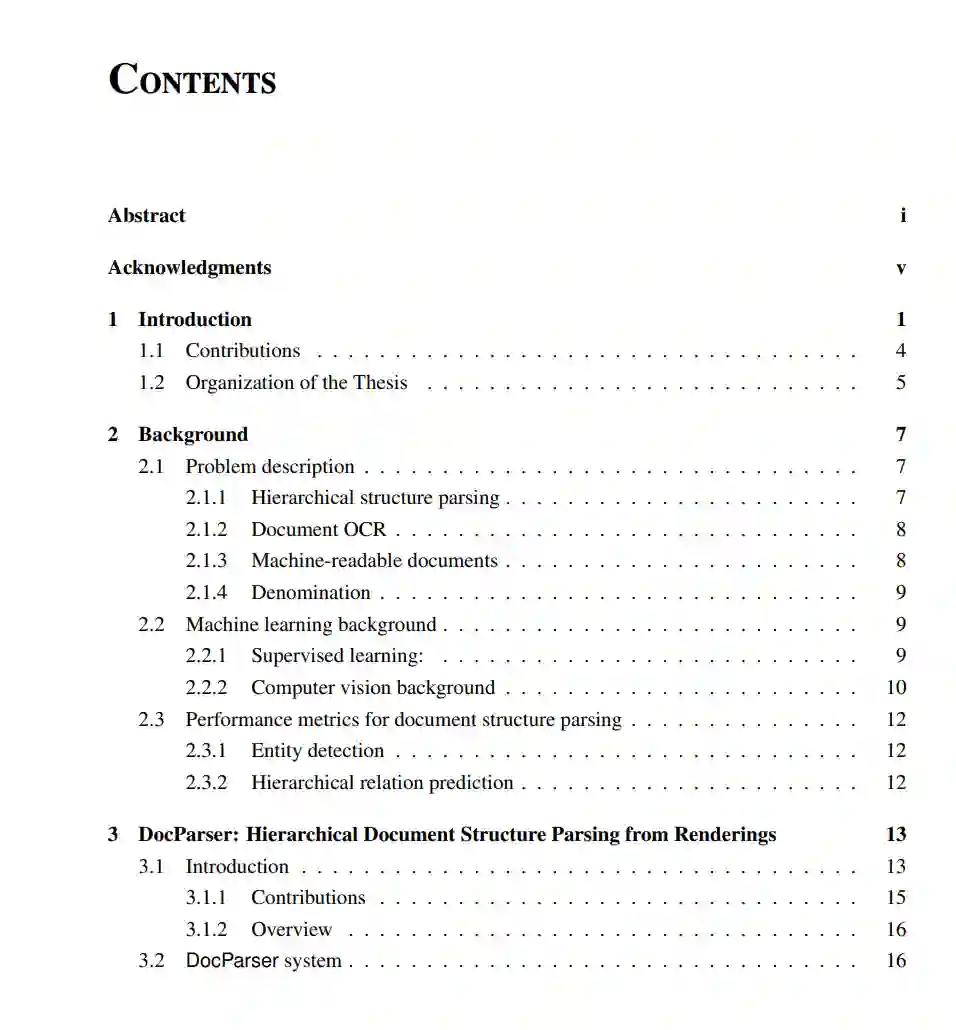DocParser:一个端到端的系统,用于解析文档中的(i)实体(例如,图形、文本块、页眉)和(ii)捕获实体之间的序列和嵌套结构的关系。此外,我们提供了一个免费可访问的数据集,用于评估层次文档结构解析。最后,我们为域特定数据稀缺的设置提供了一个可扩展的学习框架。我们使用一种新的弱监督方法来解决这个问题,该方法显著提高了文档结构解析的性能。