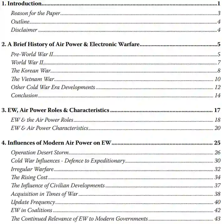 本文探讨了空中力量和电子战的几个方面,随着向第五代空中力量的过渡,这些方面正在或应该发生变化。要了解电子战发生的变化,就必须了解空中力量及其与 EMS 和 EW 的关系。第 2 章概述了空中力量和电子战的起源、依赖、变化和动机。