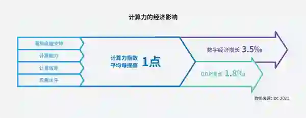 来源:IPF 2022 时间:2022-03-22 17:24:45 统计显示,2020年,我国数字经济核心产业增加值占国内生产总值(GDP)比重达到7.8%。到2025年,这一比重预计将达到10%。而在推进数实融合的过程中,算力作为数字经济时代的关键生产要素,也成为挖掘数据要素价值、推动数字经济发展的核心支撑力和驱动力。 日前,由国际数据公司IDC、浪潮信息、清华大学全球产业研究院联合编制的《2021-2022全球计算力指数评估报告》在北京发布。该报告量化揭示了全球主要国家GDP、数字经济与计算力之间的关联性和相互拉动作用。报告显示,计算力指数平均每提高1点,数字经济和GDP将分别增长3.5‰和1.8‰。