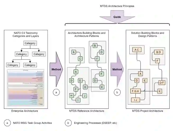 架构原则指导MTDS参考架构和MTDS项目架构的开发、维护和使用过程。原则是持久性的一般规则和指导方针,告知并支持北约和伙伴国家如何完成任务。在图2中,"指南 "箭头说明了这一点。