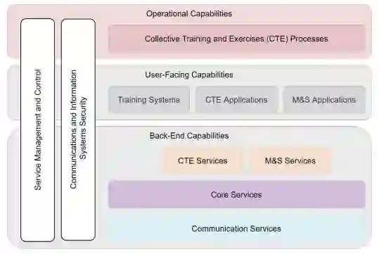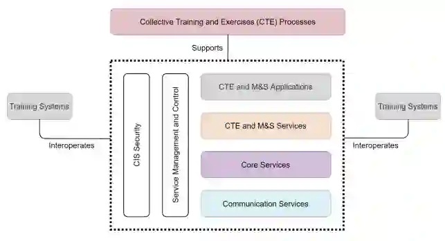 训练系统是国家资产,但也包括在这一组中,因为从RA的角度来看,这些被认为是面向用户的能力。训练系统的范围从相对简单的单元素系统,如专用的CGF应用程序,到更复杂的多元素系统,如完整的任务模拟器。讨论训练系统本身并不在本报告的范围之内,而是讨论这些能力如何在一个合成的集体训练环境中联合起来。