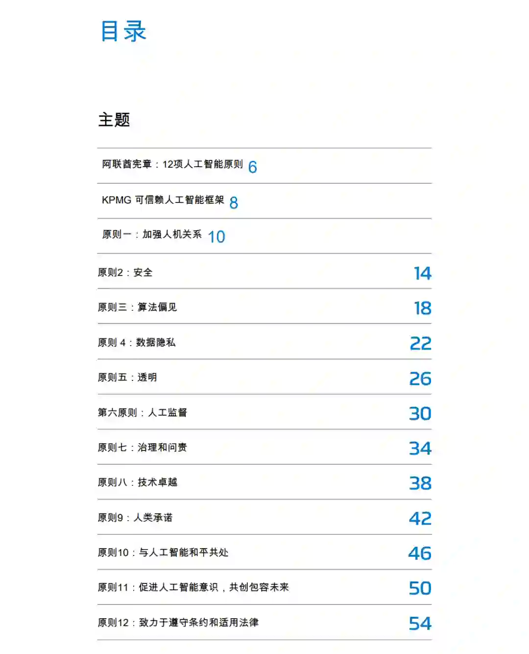 我们认识到,一套清晰、可执行的AI原则构成了符合道德和负责任的AI发展的基石。这些原则不仅对于建立公众信任和确保组织问责至关重要,而且也有助于促进惠及公民、企业和政府的包容性创新。 随着全球监管框架的演变,例如2024年通过的欧盟人工智能法案,基于欧洲委员会的可信赖人工智能伦理指南,基于原则的治理已成为人工智能监管的基础方法。阿联酋通过其人工智能2031战略以及发布于2024年7月旨在发展和使用人工智能的阿联酋人工智能宪章,展现了区域和全球领导力,该宪章阐述了十二项关键原则,以确保人工智能安全、公平和透明地部署。 这份白皮书详细解读了阿联酋人工智能宪章的12项原则,针对人工智能全生命周期的实施提供了可操作的建议,并对照KPMG可信人工智能框架进行映射,为人工智能治理、风险管理以及监管合规提供了实用见解,同时为建设与阿联酋国家优先事项相一致、具有韧性和以人为本的人工智能系统提供了蓝图。 阿联酋宪章特别强调人类监督、包容性、安全性和法律合规性——这些价值观与经合组织、联合国教科文组织以及欧盟等全球人工智能伦理标准相契合。随着人工智能监管日益严格,主动遵循这些原则的组织将更有能力负责任地引领发展,降低风险,并充分释放人工智能创新的全部潜力。 要超越美好的愿望,组织必须将这些原则嵌入到运营现实中。这意味着要演变现有的治理模式,以支持人工智能的独特需求——例如数据来源追踪、模型问责制、可解释性、偏见审查和人工监督。治理框架必须从静态政策转变为与快速发展的AI生命周期保持一致的动态控制机制。