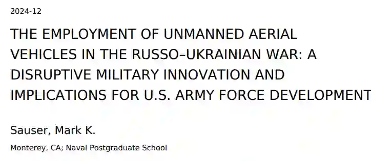 本文探讨了俄乌战争(2022-2024 年)中无人驾驶飞行器(UAV)的使用是否构成军事事务革命(RMA)。通过分析整个冲突期间的无人机行动,本研究评估了新武器、新组织和新战争方式的出现--科恩的 RMA 框架确立了这三项标准。研究发现,无人机在这场冲突中的应用代表了一种 RMA,具体表现为各种无人机技术的扩散、乌克兰专门无人系统部队的建立--世界上第一个独立的无人系统军事部门--以及包括无人机群和人工智能瞄准在内的新作战概念的出现。本研究利用乌克兰无人机行动的大量文献资料和军事创新理论,展示了无人系统如何改变现代战争。研究结果对军事现代化,尤其是对美国陆军具有重大意义。本论文建议成立专门的无人系统分部,为无人机饱和的战场开发新的作战概念,并将采购战略转向可减员系统,以便在无人战争无处不在的时代保持军事效率。
