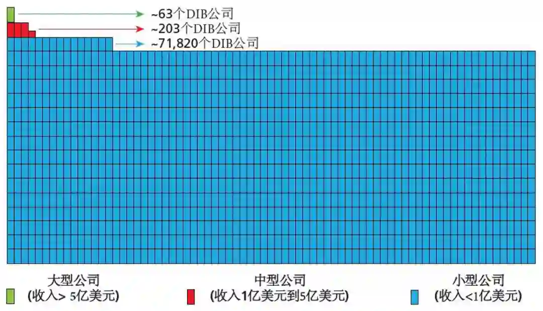 DIB小型公司:年收入在1亿美元以下; * DIB中型公司:年收入在1亿到5亿美元之间; * DIB大型公司:年收入在5亿美元以上。