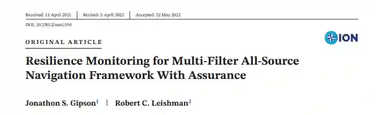 全源传感器的自主和弹性管理(ARMAS)框架在独特的过滤器(称为子过滤器)的传感器排除库中监测残余空间测试统计数据,以提供一个有保障的弹性、抗故障的全源导航架构。本文所展示的这个架构的一个关键假设是所有子滤波器之间的状态观测完全重叠。全源传感器,特别是那些只提供部分状态信息的传感器(高度计、TDoA、AOB等),本质上不符合这一要求。本文提出了一种监测实时重叠位置状态可观察性的新方法,并在ARMAS框架内引入了一个可观察性库,称为稳定可观察性监测(SOM)。 我们将保持一致的全源FDE以恢复故障传感器的能力定义为导航弹性。有弹性的FDE能力是指它能意识到何时需要更多的传感器信息来保护FDE的一致性和完整性功能不被破坏。SOM是作者所知道的第一个展示这种全源传感器的系统。创建了一个模拟GNSS和位置及速度替代性导航传感器的多代理3D环境,并利用单个GNSS伪距传感器的异常情况来展示该新型算法的能力。本文展示了SOM在ARMAS框架内的无缝集成,提供了及时的提示,以增加来自其他代理的新传感器信息,并指出框架的稳定性和保护所有来源的导航完整性何时实现。