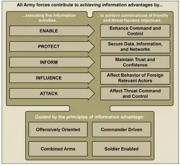 信息优势原则应作为战术领导者制定 COA 方法的补充。ATP 3-21.10 和 3-90.1 指出:"COA 描述了单元如何在决定性地点以最少的友军伤亡对敌人产生压倒性战斗力的效果。这两份ATP都只提到了制定COA过程中的信息。然而,正如 FM 3-0 中关于信息的论述,"信息也是战斗力的关键组成部分,是夺取、保持和利用主动权以及巩固成果所必需的"。