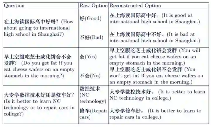 论文题目: Reconstructed Option Rereading Network for Opinion Questions Reading Comprehension