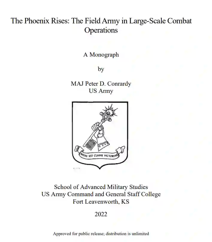 第二次世界大战期间第九陆军在欧洲的战役说明了在 LSCO 中野战军总部的条令实施情况。第九陆军司令威廉-辛普森(William H. Simpson)将军在部署前特意通过他人的经验和对条令程序的遵守对其总部进行了培训。这使参谋部能够通过节约部队行动为辛普森提供灵活性,并在没有命令的情况下产生选择。特别是,第九陆军通过在连续的潮湿间隙穿越行动中规划和推动战役,展示了野战军的要求。对这些行动的分析表明,如果美国陆军发现自己参与了未来的 LSCO,就需要有能力的野战军总部。