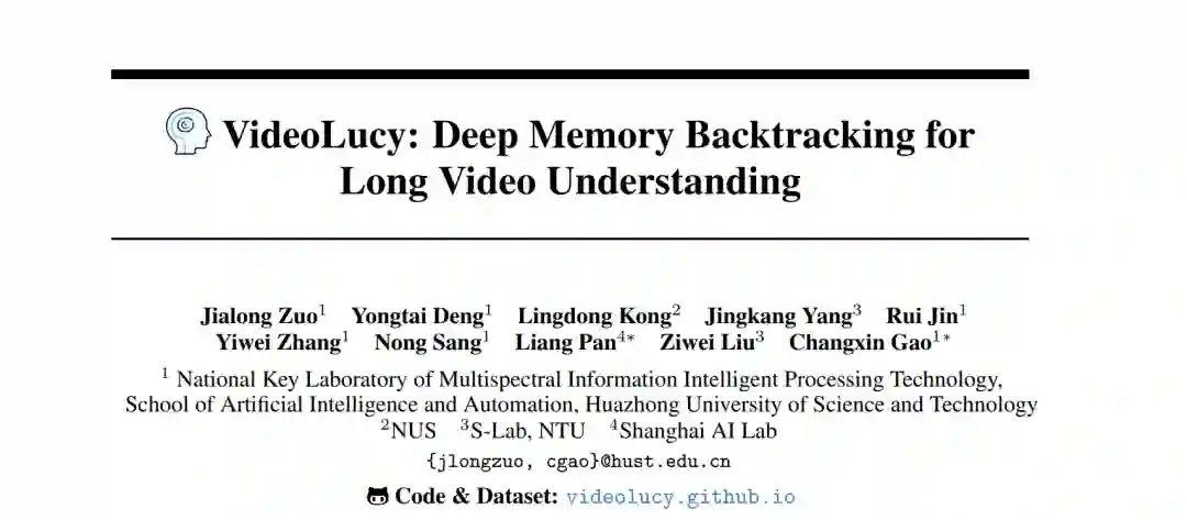 近年来的研究表明,基于大型语言模型(LLM)的智能体系统在关键视频信息检索与整合方面展现出巨大潜力,已成为长视频理解的一种有前景的途径。然而,此类系统仍面临两大挑战:其一,它们通常仅在单帧层面进行建模与推理,难以有效捕捉连续帧之间的时序上下文;其二,为了降低密集帧级字幕生成的计算成本,这些系统常采用稀疏帧采样策略,从而可能丢失关键视频信息。 为克服上述限制,我们提出了 VideoLucy —— 一种用于长视频理解的深度记忆回溯框架。受人类由粗到细的回忆过程启发,VideoLucy 设计了一个具有渐进粒度的分层记忆结构,在不同层级深度上显式地定义了记忆的细节层次与时间范围。通过一种基于智能体的迭代回溯机制,VideoLucy 能够系统地挖掘与问题相关的全局深层视频记忆,直到收集到足够的信息以生成高置信度的回答。该设计不仅实现了对连续帧的有效时序理解,还同时保留了关键细节信息。 此外,我们提出了一个新的长视频理解基准——EgoMem,用于全面评估模型在长时间跨度内理解复杂事件与捕捉细粒度细节的能力。大量实验结果表明,VideoLucy 在多个长视频理解基准上显著优于现有的最新方法,并在开源模型基础上实现了性能突破,甚至超过了包括 GPT-4o 在内的最新闭源模型。我们的代码与数据集将公开发布。