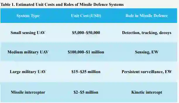 新型高超音速导弹能够机动飞行且速度超过5000公里/小时,因其相对较短的飞行时间、对指挥控制系统的压力以及穿透大多数防空系统的能力,对各国构成威胁。关于进攻性高超音速系统及其潜在对抗手段的成本动态研究,突显了成本交换比、可扩展性和战略稳定性在未来大国竞争中的重要性。对抗高超音速武器的传统防御手段所涉及的成本考量,包括用于跟踪和提示拦截弹的常规拦截导弹及传感器网络。高超音速武器系统的成本估算表明,其全寿命周期成本——包括研究、开发、测试、评估、生产以及运行与保障——很可能每个系统超过10亿美元。防御方需要哪些能力来对抗高超音速导弹威胁?本文探讨了防御方为制定和运用不对称战略、迫使进攻方比防御方消耗更多资源的选择方案,以及此威胁与反威胁动态对战略竞争的影响。