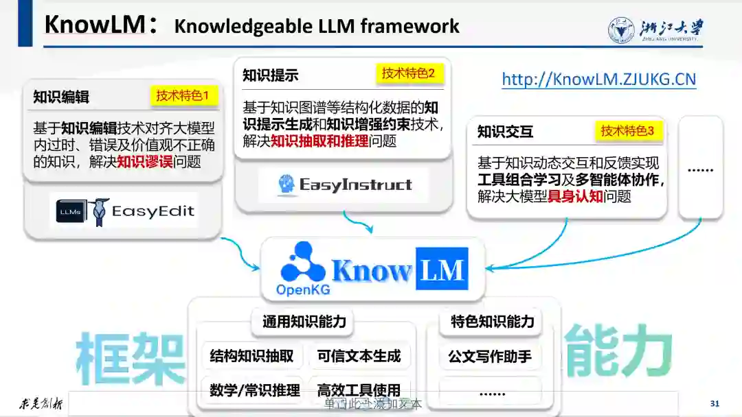 大模型专辑 导读 知识图谱和大型语言模型都是用来表示和处理知识的手段。大模型补足了理解语言的能力,知识图谱则丰富了表示知识的方式,两者的深度结合必将为人工智能提供更为全面、可靠、可控的知识处理方法。在这一背景下,OpenKG组织“新KG”视点系列文章——“大模型专辑”,不定期邀请业内专家对知识图谱与大模型的融合之道展开深入探讨。本期刊登浙江大学计算机科学与技术学院陈华钧教授分享的“大模型时代的知识处理:新机遇与新挑战”,本文整理自陈华钧教授在CCF Talk及在第三届知识图谱产业论坛上的主旨报告,精简版发表于中国计算机学会通讯CCCF第 19 卷第 9 期。
