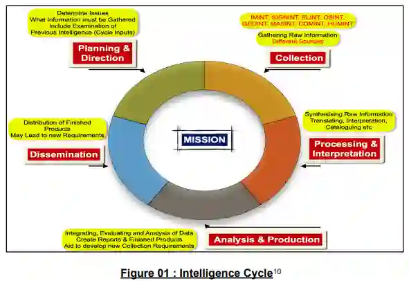 人工智能(AI)的能力与应用范围已实现巨大飞跃,印度武装部队需紧跟这些发展以维护安全和技术优势。随着人工智能日益重要,未来军事主导权将不再取决于军队规模,而取决于算法性能,因此有必要审视当前军事情报如何运用人工智能及其未来应用前景。基于此,印度武装部队军事情报领域中人工智能与数据分析的融合集成——尤其聚焦情报周期的优化——亟需深入研究。有关上述目标的公开文献资源丰富,涵盖书籍、文章、论文及期刊。本论文旨在考察人工智能与印度武装部队现行军事情报框架的整合现状及未来可扩展性方案。基于研究问题,提出如下研究目标:
