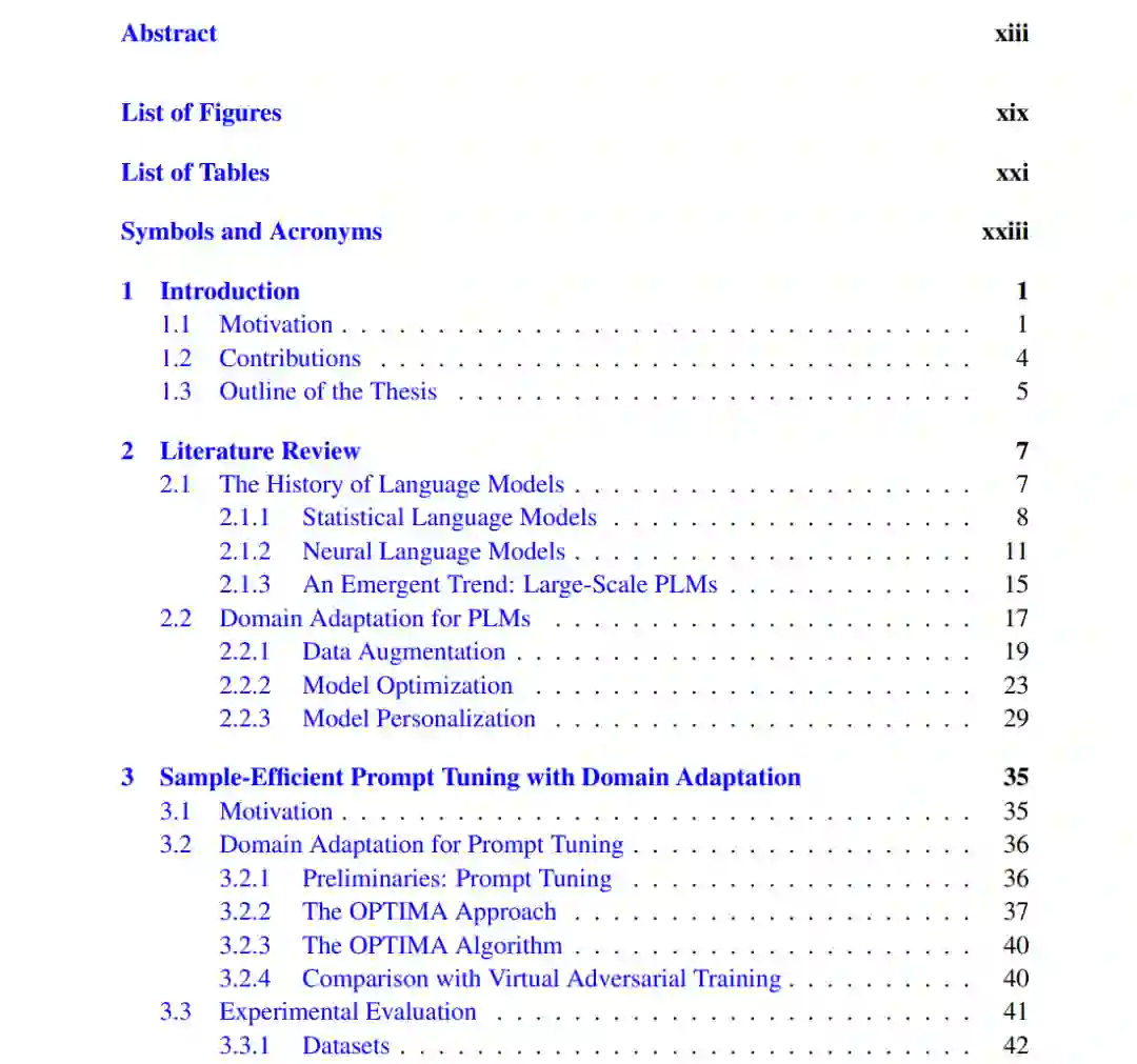 本论文的目标是探索可以高效利用目标领域标签数据的技术,通过有效地从类似的源领域向目标领域转移知识,更好地将给定的PLM适应到感兴趣的目标领域。为了实现这个目标,我从机器学习流程中的三个角度进行研究,每个角度都假定只有特定的位置可以用可用的计算资源进行更新。也就是说,我们保持所有其他条件不变,只对输入数据、模型表示和输出预测分别进行更新。我们展示了如何在每个场景下用目标领域的有限标注数据获得更好的泛化性能。总的来说,我们提出了一个新的算法,使用领域适应目标生成对抗性扰动,以增强在低资源场景下软提示调优的可转移性,一个新的模型优化算法,当优化任务分类器以适应竞争损失时,考虑对抗性领域判别器的下一步梯度,以及一个新的联邦学习框架,校准条件概率分布,以在不同标签分布下将同一PLM适应到多个领域。我们在以下章节中详细介绍了具体问题、相关工作、详细方法、广泛实验和深入讨论,并阐明了如何在迎合新兴学习范式的同时,依据传统的机器学习方法。
