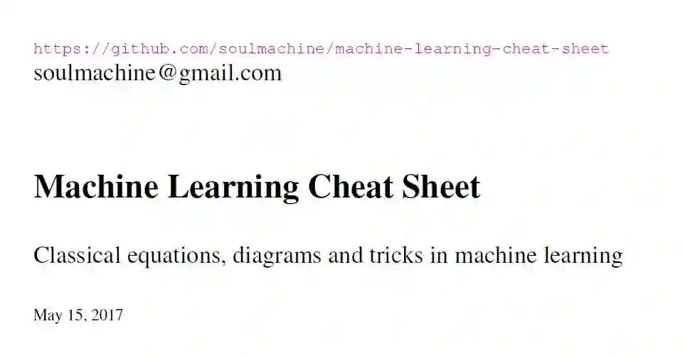 本备忘单是机器学习手册的浓缩版,包含了许多关于机器学习的经典方程和图表,旨在帮助您快速回忆起机器学习中的知识和思想。