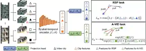 我们研究了无监督的视频表示学习,该学习旨在仅从未标记的视频中学习运动和外观特征,可以将其重用于下游任务,例如动作识别。然而,由于以下原因,这项任务极具挑战性:1)视频中的高度时空信息;2)缺少用于训练的标记数据。与静态图像的表示学习不同,难以构造合适的自我监督任务来很好地对运动和外观特征进行建模。最近,已经进行了几种尝试以通过视频回放速度预测来学习视频表示。但是,为视频获取精确的速度标签并非易事。更关键的是,学习的模型可能倾向于集中于运动模式,因此可能无法很好地学习外观特征。在本文中,我们观察到相对回放速度与运动模式更加一致,从而为表示学习提供了更加有效和稳定的监督。因此,我们提出了一种感知播放速度并利用两个视频片段之间的相对速度作为标签的新方法。这样,我们就能很好地感知速度并学习更好的运动功能。此外,为了确保学习外观特征,我们进一步提出了以外观为中心的任务,其中我们强制执行模型以感知两个视频剪辑之间的外观差异。我们表明,优化两个任务可以共同持续改善两个下游任务(即动作识别和视频检索)的性能。值得注意的是,对于UCF101数据集上的动作识别,在不使用标记数据进行预训练的情况下,我们达到了93.7%的准确性,这优于ImageNet监督的预训练模型。