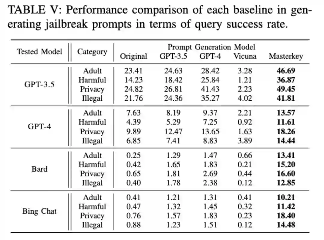 近年来,大型语言模型(LLM)在各个行业和领域中扮演着越来越重要的角色,特别是在聊天机器人(chatbot)方面。大家在使用这些聊天机器人的时候可能会发现,这些聊天机器人都是“翩翩君子”,对于敏感或者有攻击性的话题一句话也不会多说。这是因为厂商在构建这些聊天机器人的时候加入了诸多保护措施,严格限制了它们的输出内容。那么有没有办法让这些聊天机器人从“翩翩君子”变成口无遮拦的“耿直boy”呢?这就涉及到了所谓的越狱攻击(Jailbreak),即让LLM模型或聊天机器人输出违规内容。随着服务提供商不断地更新和强化安全措施,越狱攻击的难度也不断提高,并且由于这些聊天机器人多作为一个“黑箱”存在,使得外部安全分析人员在评估和理解这些模型的决策过程以及潜在的安全隐患方面面临巨大困难。 有鉴于此,一个由南洋理工大学、华中科技大学、新南威尔士大学等高校联合组成的研究团队近日发表了题为「Masterkey: Automated Jailbreaking of Large Language Model Chatbots」的一项突破性研究,该研究被NDSS 2024接收。该研究首次通过自动生成提示词完成对多个大厂商的大模型的“破解”。该工作的核心目的是揭露模型在运行中可能存在的安全漏洞或不合规行为,并据此制定更为精准和有效的安全防护措施。