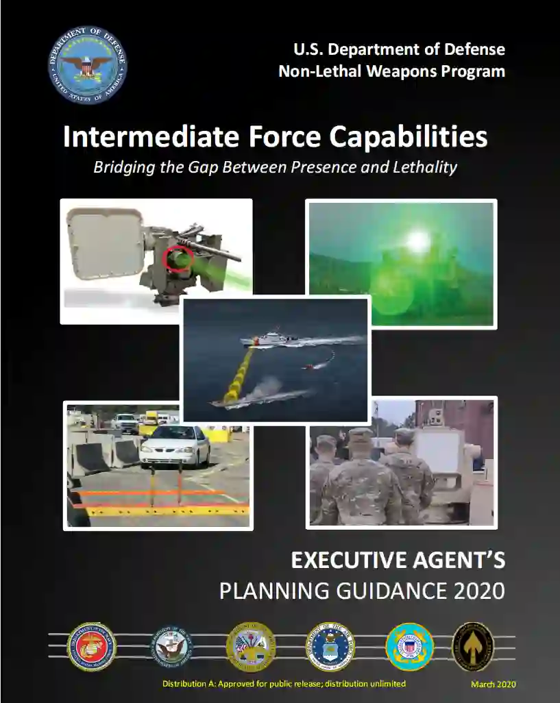 作为美国防部(DoD)非致命武器(NLW)的执行代理人,戴维·h·伯杰(美国海军陆战队司令)是非致命武器事务的协调人。对非致命武器的持续研究、开发和投资--被描述为 "中间部队能力"--将提高我们应对整个冲突过程中的挑战的能力。