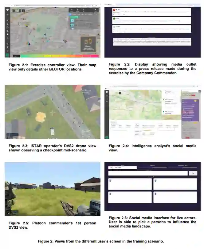 • 信息战通过一个合成社交媒体中心进行模拟,由实况受训人员或演习控制人员触发,以模拟友好/敌对信息行动。
