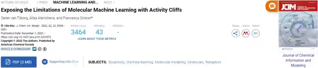 参考资料van Tilborg D, Alenicheva A, Grisoni F. Exposing the limitations of molecular machine learning with activity cliffs[J]. 2022. --------- End ---------