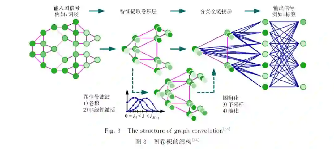 CNN 已经在图像识别、自然语言处理等多个领 域取得了不俗的成绩,但其只能高效地处理网格和 序列等这样规则的欧氏数据.不能有效地处理像社 交多媒体网络数据、化学成分结构数据、生物蛋白数 据以及知识图谱数据等图结构的非欧氏数据.为此, 无数学者经过不懈努力,成功地将 CNN 应用到图 结构的非欧氏数据上,提出了图卷积神经网络(graph convolutionalnetwork,GCN).GCN 是 GNN 中一 个重要分支,现有的大多数模型基本上都是在此基 础上变化推导而来.下面我们将按照从基于谱方法、 空间方法和池化3方面对 GCN 进行总结和概括.