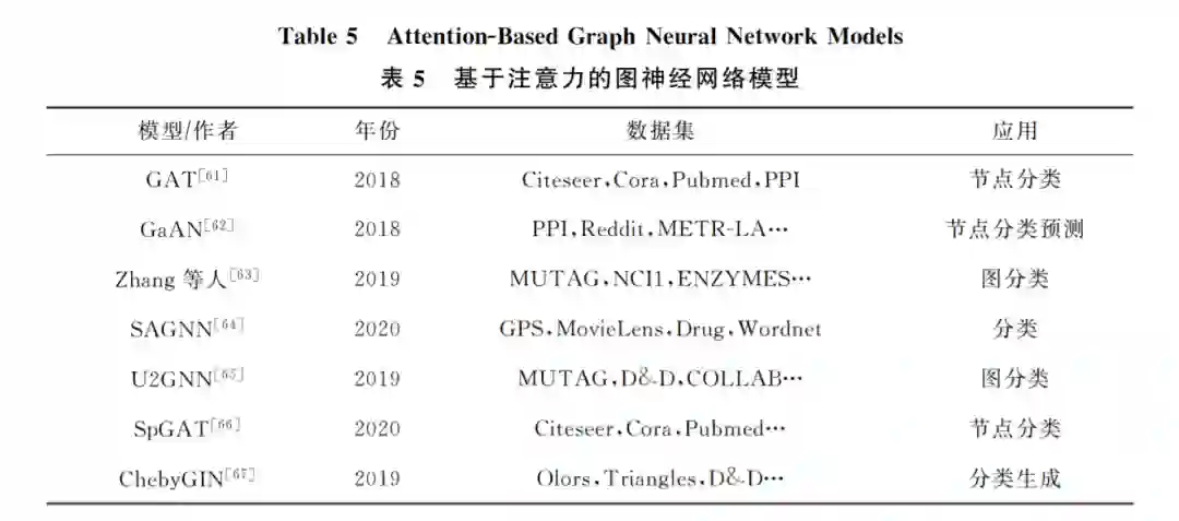 注意力机制在处理序列任务已经表现出强大的 能力[60],比如在机器阅读和学习 句 子 表 征 的 任 务 中.其强大的优势在于允许可变大小的输入,然后利 用注意力机制只关心最重要的部分,最后做出决策处理.一些研究发现,注意力机制可以改进卷积方 法,从而可以构建一个强大的模型,在处理一些任务 时能够取得更好的性能.为此,文献[61]将注意力机 制引入到了图神经网络中对邻居节点聚合的过程 中,提出了图注意力网络(graphattentionnetworks, GAT).在传统的 GNN 框架中,加入了注意力层,从 而可以学习出各个邻居节点的不同权重,将其区别对待.进而在聚合邻居节点的过程中只关注那些作 用比较大的节点,而忽视一些作用较小的节点.GAT 的核心思想是利用神经网络学习出各个邻居节点的 权重,然后利用不同权重的邻居节点更新出中心节 点的表示。