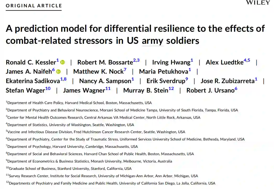 结论:可以构建一个可靠的部署前弹性分来预测高 CRS 对作战部队士兵持续性创伤后应激障碍影响的变化。这种评分可用于有针对性的预防干预,以减少创伤后应激障碍或其他与复原力相关的结果。