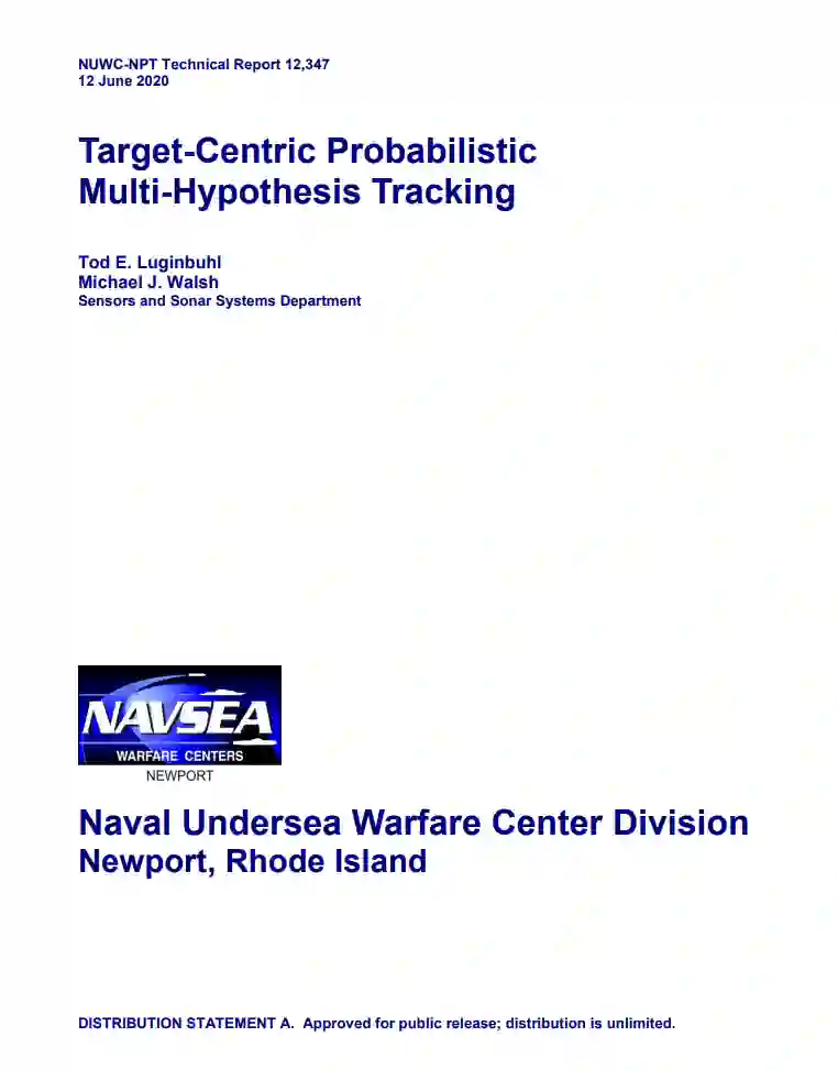 本报告研究了概率多假设跟踪(PMHT)的另一种分配模型,其中目标被分配给测量,与原始的PMHT模型相比,测量被分配给目标。一个新的 "以目标为中心 "的PMHT算法被推导出来,并与原来的 "以测量为中心 "的算法相比较。研究了以目标为中心的PMHT和用于杂波中单目标跟踪的概率数据关联(PDA)滤波器之间的关系,并为以目标为中心的PMHT提出了一个PDA式的目标状态协方差矩阵的近似值。还提出了一个以目标为中心/以测量为中心的PMHT混合体,以解决密布目标情况下的算法性能。