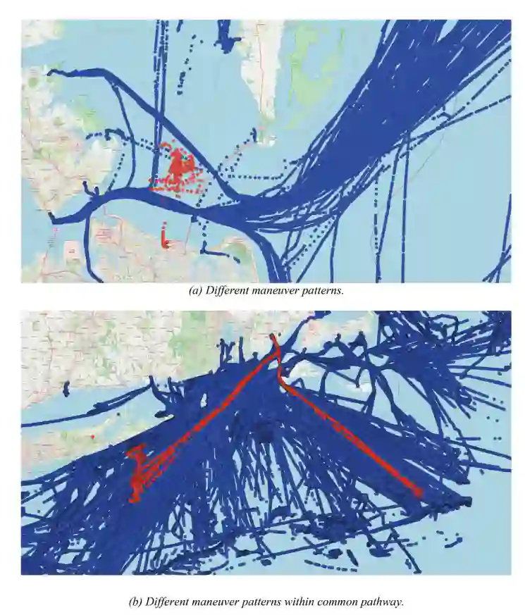 在海洋环境中,导航系统被用来确保船只在海上航行时的安全和保障。自动识别系统(AIS)的发展和实施在分析船舶轨迹和检测不寻常的海上事件方面发挥了重要作用,如可疑活动、危险事件和海上追踪模式(Peiguo等人,2017;Li等人,2018)。这些系统提供与船舶运动和状态有关的重要信息,如地理位置和运动学。这些信息由船只通过AIS信息发送,通常由卫星、岸基站和周围船只的收发器检测。