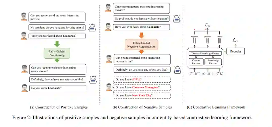 基于知识的对话(KGD)学习基于给定对话环境和外部知识(例如,知识图谱;KGs)生成有信息量的回应。近期,大型语言模型(LLMs)和预训练技术的出现为基于知识的对话带来了巨大成功。然而,在实际应用中构建KGD系统时,各种现实世界的噪声是不可避免的。例如,对话环境可能涉及到的扰动包括拼写错误和缩写等。此外,知识图谱通常存在不完整性,也可能包含错误和过时的事实。这些现实世界的噪声对KGD系统的鲁棒性构成挑战,并阻碍了其在现实世界中的应用。在这篇论文中,我们提出了一个基于实体的对比学习框架,以提高KGD的鲁棒性。具体而言,我们利用KGD样本中的实体信息创建包含语义无关和语义相关扰动的正负样本。对比学习框架确保KGD模型意识到这两种类型的扰动,从而在现实应用中面对潜在噪声输入时生成有信息量的回应。在三个基准数据集上的实验结果显示,我们的方法在自动评估分数方面实现了新的最佳性能,验证了其有效性和潜力。此外,我们展示了我们的方法在噪声环境和少样本设置下都能比对比模型生成更好的回应。
