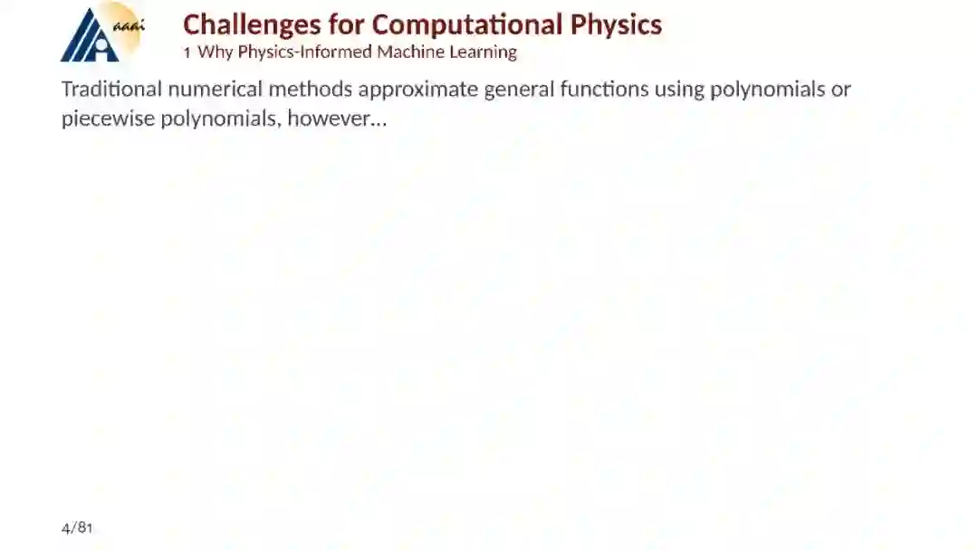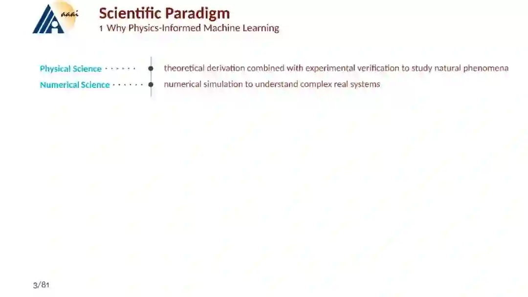 [1] Karniadakis G E, Kevrekidis I G, Lu L, et al. Physics-informed machine learning. Nature Reviews Physics, 2021, 3(6): 422-440. [2] Hao Z, Liu S, Zhang Y, et al. Physics-informed machine learning: A survey on problems, methods and applications. arXiv preprint arXiv:2211.08064, 2022. [3] https://2prime.github.io/files/SML/SciMLReport.pdf Physics-informed Neural Network [1] Wang S, Sankaran S, Wang H, et al. An expert’s Guide to Training Physics-informed Neural Networks, arXiv. preprint. [2] Krishnapriyan A, Gholami A, Zhe S, et al. Characterizing possible failure modes in physics-informed neural networks[J]. Advances in Neural Information Processing Systems, 2021, 34: 26548-26560. [3] Lu Y, Chen H, Lu J, et al. Machine learning for elliptic pdes: Fast rate generalization bound, neural scaling law and minimax optimality. ICLR 2022. [4] Marwah T, Lipton Z, Risteski A. Parametric complexity bounds for approximating PDEs with neural networks. Advances in Neural Information Processing Systems, 2021, 34: 15044-15055. Operator Learning: [1] Kovachki N, Li Z, Liu B, et al. Neural operator: Learning maps between function spaces. arXiv preprint arXiv:2108.08481, 2021. [2] Lu L, Jin P, Pang G, et al. Learning nonlinear operators via DeepONet based on the universal approximation theorem of operators. Nature machine intelligence, 2021, 3(3): 218-229. [3] Lu L, Meng X, Cai S, et al. A comprehensive and fair comparison of two neural operators (with practical extensions) based on fair data. Computer Methods in Applied Mechanics and Engineering, 2022, 393: 114778. [4] Lanthaler S, Mishra S, Karniadakis G E. Error estimates for deeponets: A deep learning framework in infinite dimensions. Transactions of Mathematics and Its Applications, 2022, 6(1). [5] Boullé N, Townsend A. A Mathematical Guide to Operator Learning. arXiv preprint arXiv:2312.14688, 2023.