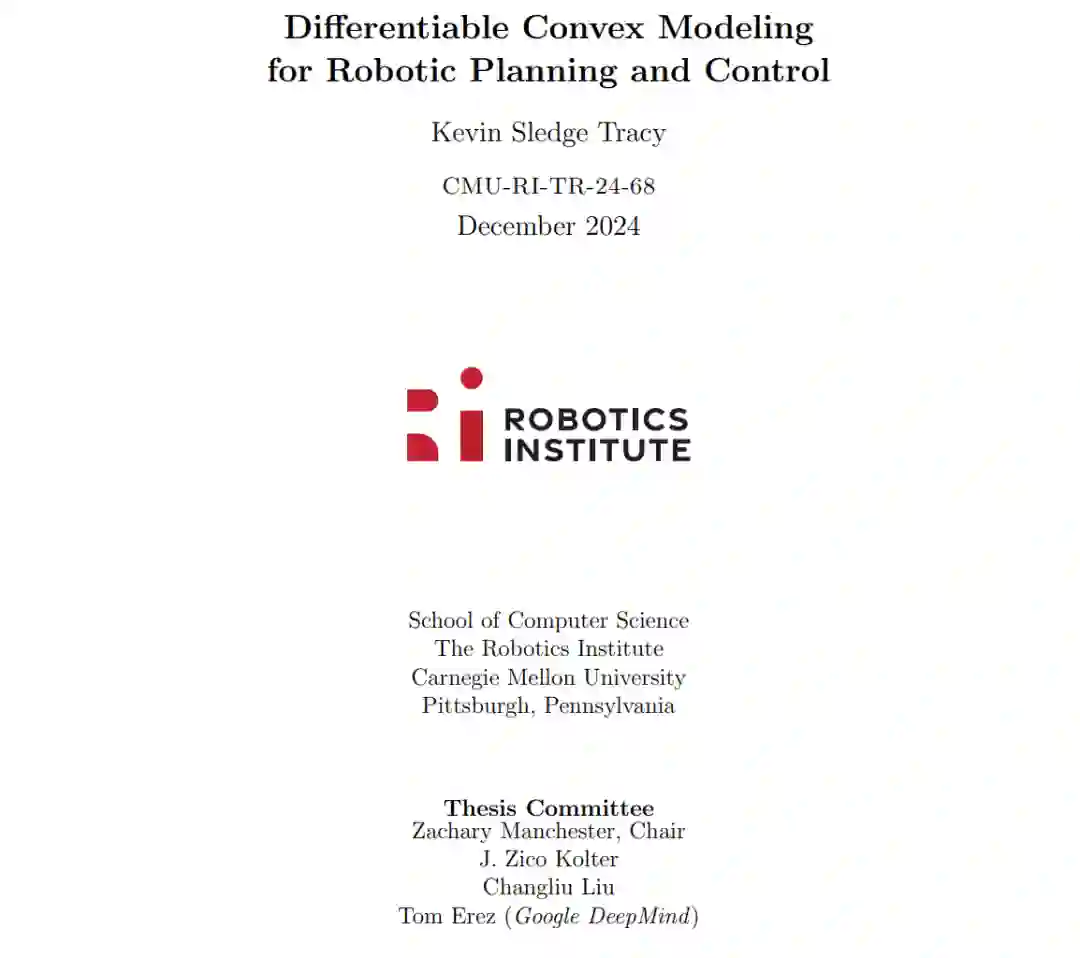 本论文介绍了基于可微凸建模的机器人仿真、规划和控制的新方法。通过在优化优先的框架中制定这些领域的算法,我们通常能够简化算法的复杂性,并将计算复杂度卸载到高度专业化和高效的求解器上。本论文重点扩展了许多现代凸建模的进展,其中求解器能够在保持完全可微的同时,为凸优化问题提供全局最优解。由于这些求解器既快速又稳健,并且是可微的,它们可以像传统的数值线性代数程序(如用来求解线性系统的程序)一样使用。利用凸建模作为新算法开发的构建块,可以实现简单、高效且灵活的算法。