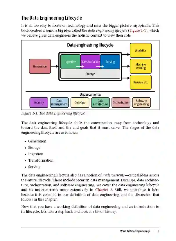 获得整个数据工程领域的简明概述使用端到端最佳实践框架评估数据工程问题在选择数据技术、架构和流程时,要避开营销炒作使用数据工程生命周期来设计和构建一个鲁棒的架构跨数据工程生命周期合并数据治理和安全性
