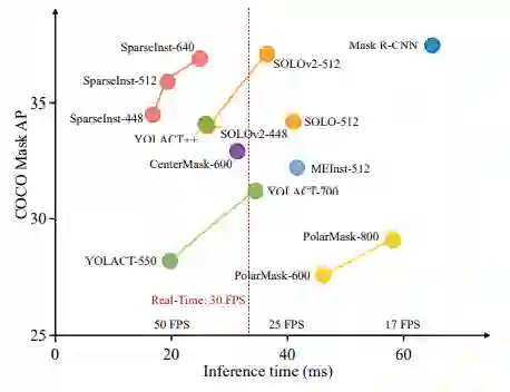在本文中,我们提出了一种新颖、高效的全卷积实时实例分割框架。以前,大多数实例分割方法严重依赖目标检测并基于边界框或密集中心执行掩码预测。相比之下,我们提出了一组稀疏的实例激活图,作为新的对象表示,以突出每个前景对象的信息区域。然后根据高亮区域聚合特征得到实例级特征,进行识别和分割。此外,基于二分匹配,实例激活图可以以一对一的方式预测对象,从而避免后处理中的非极大值抑制(NMS)。由于具有实例激活图的简单而有效的设计,SparseInst 具有极快的推理速度,在 COCO 基准测试中达到了 40.2 FPS 和 36.9 AP,在速度和准确性方面明显优于现有方法。