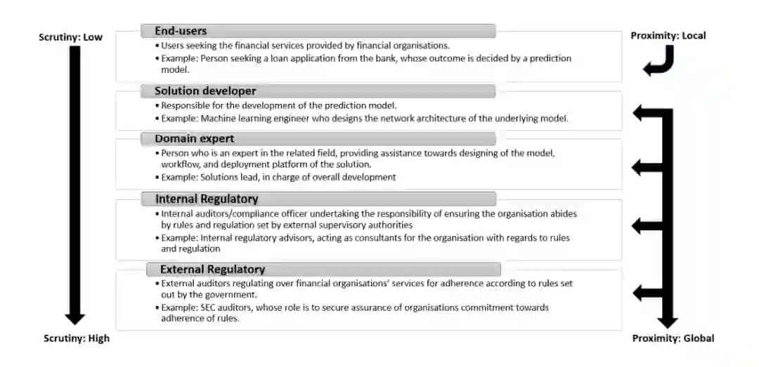 • 我们提供了一个关于金融领域XAI方法的广泛研究(FinXAI),供对在他们的解决方案中优先考虑透明度的研究人员参考。 • 我们将FinXAI过程定位为一系列的决策过程(参见图4),我们强调将XAI技术与目标受众保持一致。这个框架的目标是产生既面向目标又以观众为中心的解释。 • 我们调研了当前的FinXAI技术,分析了它们对伦理目标的技术贡献,并列出了实施XAI时面临的一些关键挑战以及未来需要改进的重要方向。