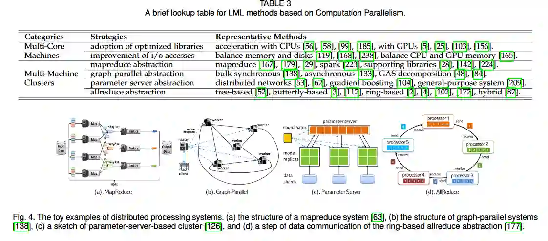 我们将贡献总结如下。 首先,我们根据三个计算角度对LML进行了全面概述。 具体来说,它包括:1)模型简化,通过简化预测模型来降低计算复杂性; 2)优化近似,通过设计更好的优化算法来提高计算效率; 3)计算并行性,通过调度多个计算设备来提高计算能力。其次,我们对现有的LML方法进行了深入的分析。 为此,我们根据目标场景将每个角度的方法划分为更精细的类别。 我们分析了它们促进机器学习过程的动机和内在策略。 然后,我们介绍了具有代表性的成就的特征。此外,我们还回顾了混合方法,这些方法共同改善了协同效应的多个视角。 第三,我们从各个角度分析了LML方法的局限性,并根据其扩展提出了潜在的发展方向。 此外,我们讨论了有关LML未来发展的一些相关问题。