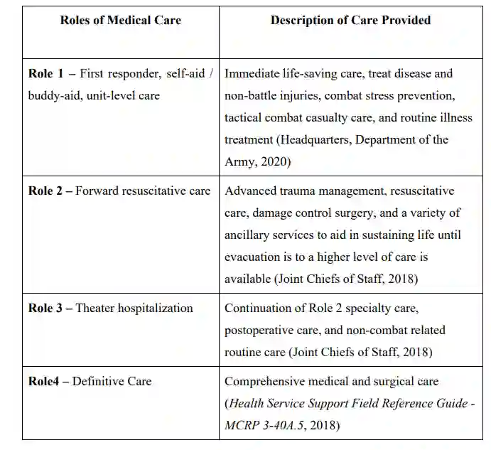 表 1. 军事医疗的作用说明
