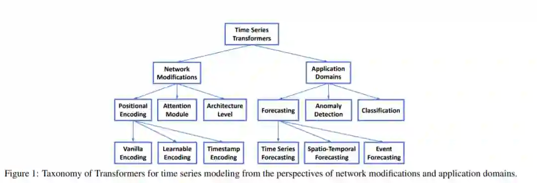 在时序数据的长距离依赖和交互中,transformer表现出了很强的建模能力,因此在时间序列建模中很有吸引力。由于时间序列数据和时间序列任务的特殊特性,许多Transformer的变体被提出以适应各种时间序列任务中的时间序列数据,如预测[Li et al., 2019; Zhou et al., 2021; Zhou et al., 2022],异常检测[Xu et al., 2022; Tuli et al., 2022],分类[Zerveas et al., 2021; Yang et al., 2021],等等。例如,季节性或周期性是时间序列的一个重要特征[Wen等人,2021a],如何有效地建模长期和短期的时间相关性,并同时捕获季节性仍然是一个挑战[Wu et al., 2021; Zhou et al., 2022]。由于Transformer for time series是深度学习领域的一个新兴领域,对Transformer for time series进行系统、全面的研究将对时间序列学界大有裨益。我们注意到,存在一些关于时间序列深度学习的综述,包括预测[Lim和Zohren, 2021;Benidis等人,2020年;Torres et al., 2021],分类[Ismail Fawaz et al., 2019], anomaly detection [Choi et al., 2021; Blazquez-Garc ´ ´ıa et al., 2021]和数据增强[Wen et al., 2021b],但很少或没有对时间序列的Transformers 进行深入分析。