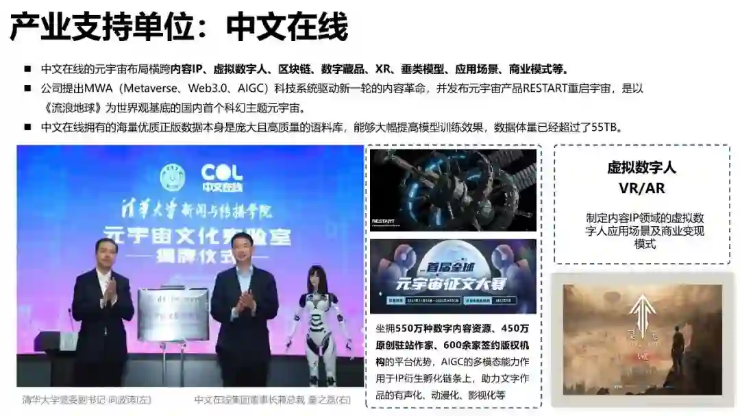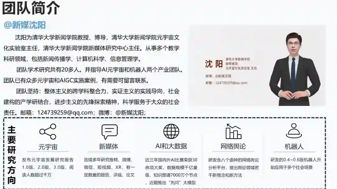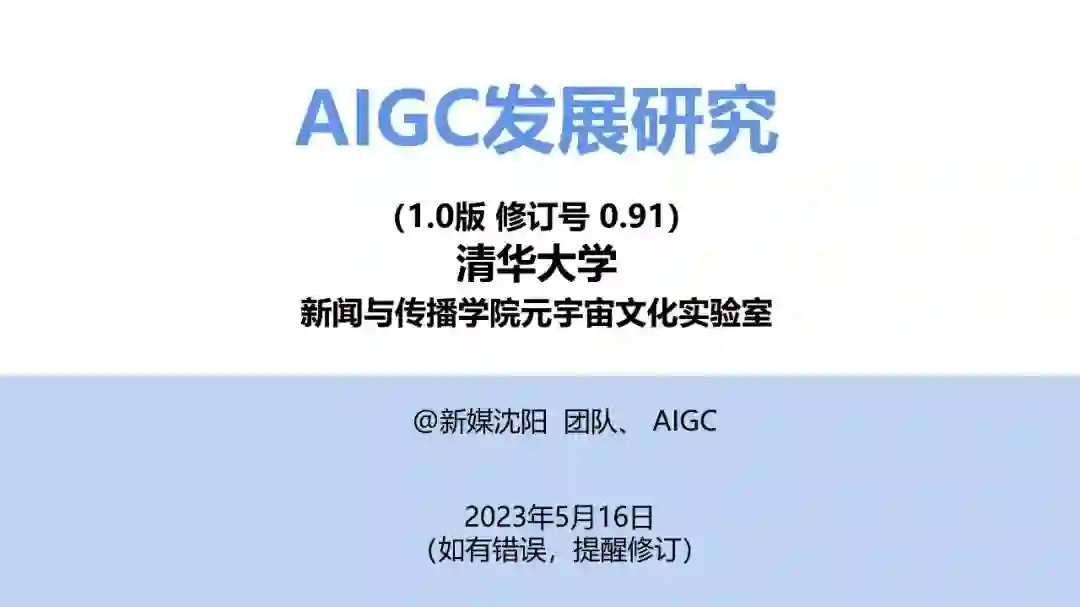 本文来源 清华大学新闻与传播学院元宇宙文化实验室 日前,由清华大学新闻与传播学院元宇宙文化实验室主办的《AIGC发展研究报告1.0版》发布会在京举行。《报告》为社会各界应对AI领域的挑战提供了理论指导与实践建议,有助于共同探寻人工智能和人类未来发展的和谐之道。 该报告融汇全球各国在AIGC领域的政策制定、企业战略部署及产业实践经验,汇聚了行业发展、学术研究与社会理念,致力于为广大读者普及AIGC知识体系,提供全面了解AIGC动态的指南。与此同时,《报告》涉猎当下AIGC研究的热点议题,该报告至少有60%的内容是由AIGC自动生成。《报告》共分为技术篇、产业篇、评测篇、职业篇、风险篇、哲理篇以及未来篇七个部分,旨在对AIGC发展趋势进行科学预测与展望,为读者提供有益的参考依据。