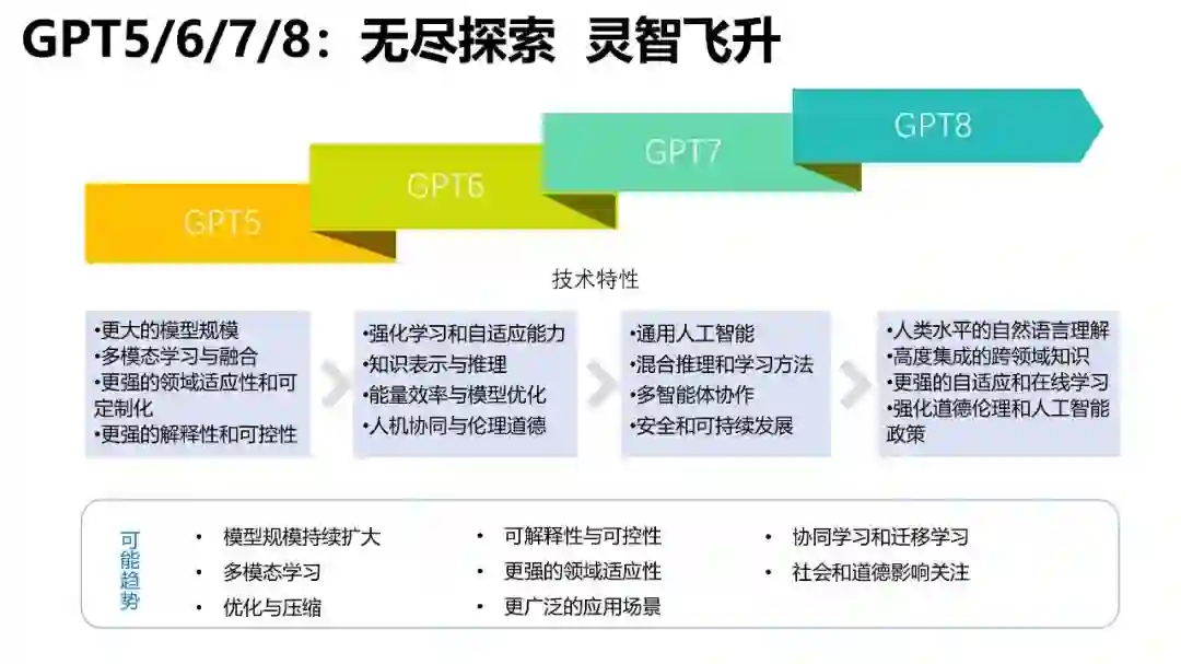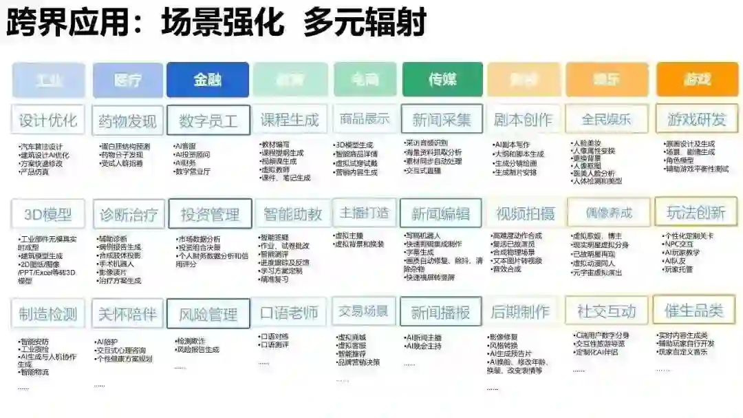 技术作为AIGC领域的基石,其发展与创新对整个行业具有至关重要的意义。《报告》对大语言模型的软件特征和互联网模式进行归纳,提出“重互联网概念”,并构建“技术急变指数”以评估大语言模型对社会产生颠覆性影响的能力。在此基础上,报告创新性地对未来GPT5-GPT8等后续版本技术发展进行了推演与预测。这些预测将有助于研究人员深入了解AIGC领域的技术发展趋势,并为相关技术的进一步发展提供理论指导。 产业是AIGC的应用场景,而评测则是衡量AIGC应用效果的关键环节。AIGC技术的进步与创新为各行各业带来了深刻的变革,推动了产业的发展。产业篇创新性地提出AIGC五层发展理论,从基础设施到价值创新,逐层递进的构建发展需求层次,以指导企业和组织更好地理解AIGC在产业中的应用。