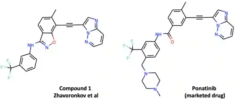 **图5 模型生成化合物1与上市药物ponatinib的比较